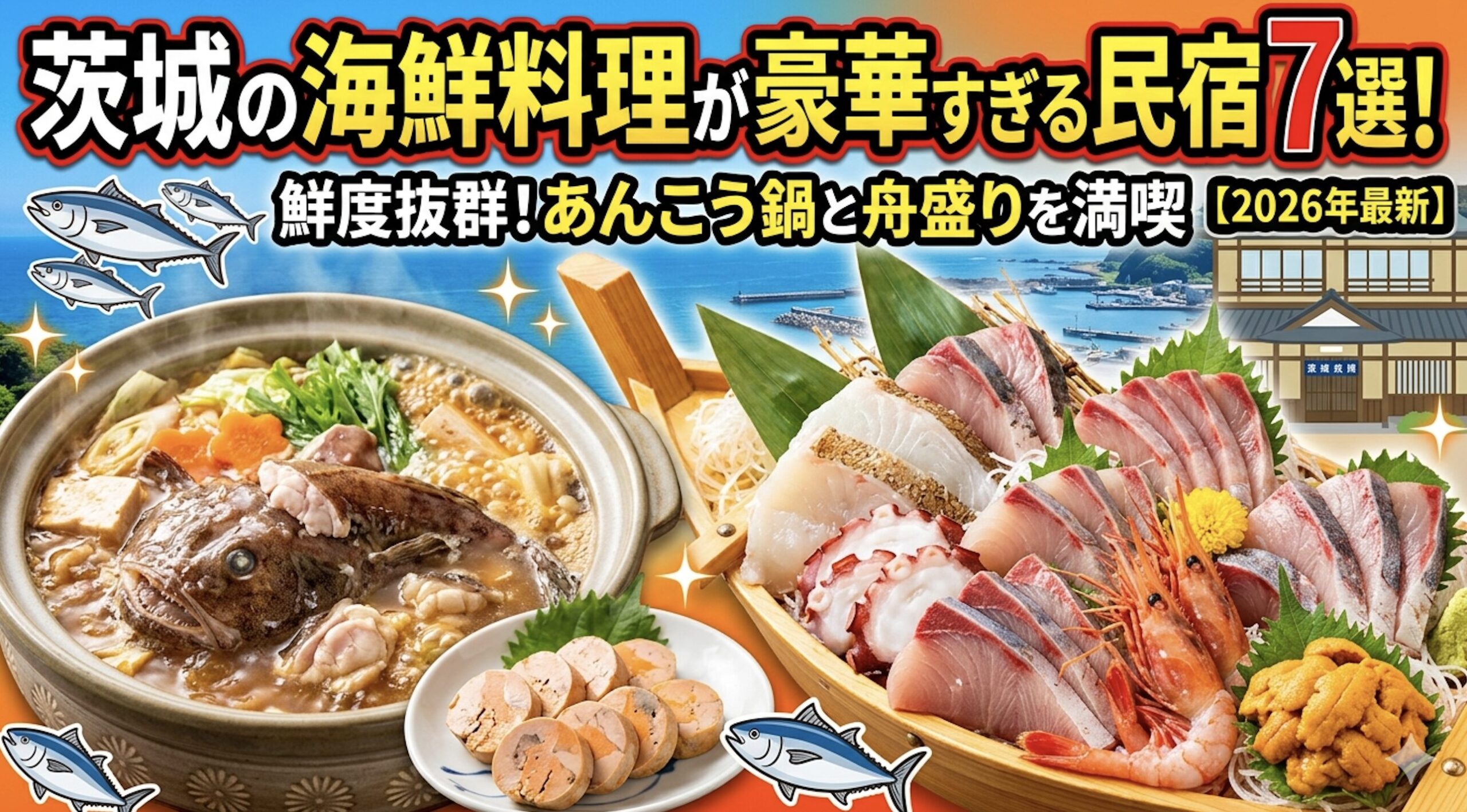 特に冬の「あんこう」や夏の「岩牡蠣」など、季節ごとの旬を求めて多くの食通が訪れます。今回は、茨城の海沿いで「本当に豪華な海鮮が食べられる」と評判の民宿・旅館を7つ厳選しました。